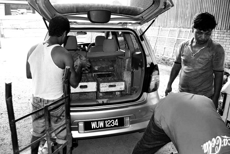 Kalau anda lihat pada gambar di atas peti-peti kayu ini hampir runtuh dan hanya bersandar kepada dinding zink, jadi apa yang perlu dibuat ialah dengan membuang botol-botol kaca yang berat dari peti kayu ini terlebih dahulu. Nazrin cuba menahan peti-peti ini dari terus tumbang dengan menahan menggunakan kayu beluti panjang.